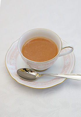 - 1カップにティーバッグを入れ、カップの3分の2弱くらいまで、熱湯を注いでください。(紅茶葉から入れていただいても結構です。)