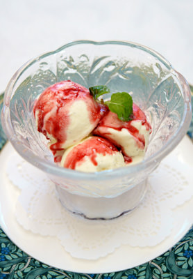 - 2「ジュリエット」を少量アイスクリームに振りかけることで、一味違ったカシスアイスが完成します。