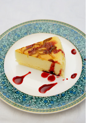 市販のレアチーズケーキを「ジュリエット」で飾りつけることで、深紅の「ジュリエット」が白い生地に映え、魅惑のデザートに早変わりします。